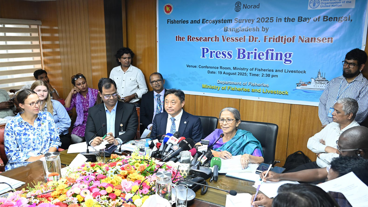 আজ মঙ্গলবার বিকেলে সচিবালয়ে নিজ কার্যালয়ে এক সংবাদ সম্মেলনে এসব কথা বলেন মৎস্য ও প্রাণিসম্পদ মন্ত্রণালয়ের উপদেষ্টা ফরিদা আখতার। এ সময় উপস্থিত ছিলেন ঢাকাস্থ জাতিসংঘের খাদ্য ও কৃষি সংস্থার (এফএও) বাংলাদেশ প্রতিনিধি জিয়াকুন শী, রয়্যাল নরওয়েজিয়ান দূতাবাস, ঢাকার চার্জ দ্য অ্যাফেয়ার্স মারিয়ানে রাবে ক্নায়েভেলস্রুদ, মৎস্য ও প্রাণিসম্পদ সচিব (রুটিন দায়িত্ব) মো. তোফাজ্জেল হোসেন, অতিরিক্ত সচিব মো. ইমাম উদ্দীন কবীর, অতিরিক্ত সচিব সৈয়দা নওয়ারা জাহান, যুগ্মসচিব ড. আবু নঈম মুহাম্মদ আবদুছ ছবুর, মৎস্য অধিদপ্তরের মহাপরিচালক ড. মো. আবদুর রউফ।