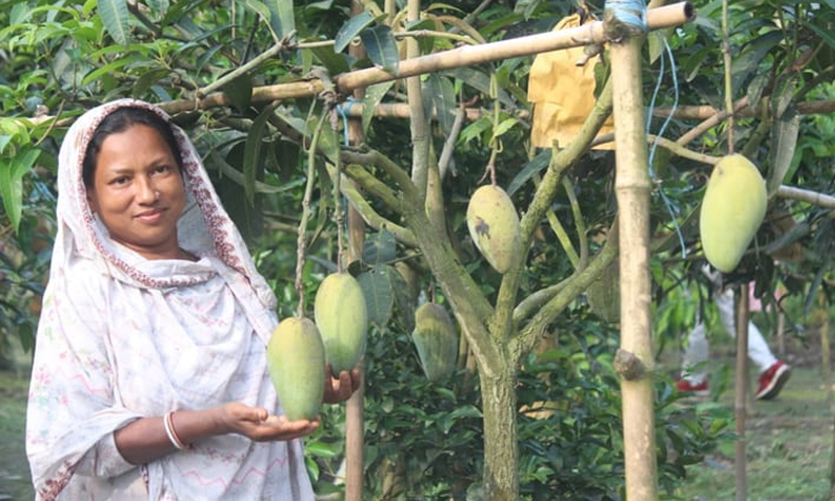 নীলফামারীর রুমা অধিকারীর বাগানের গাছে গাছে এই অসময়ে ঝুলছে হরেক জাতের পরিপক্ক আম। লেট ভ্যারাইটির বা নাবী জাতের আম উৎপাদন করে তিনি এখন এক সফল কৃষি উদ্যোক্তা।