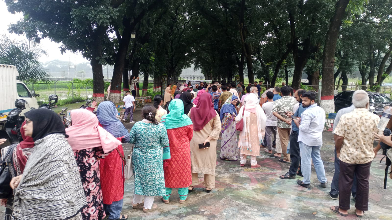 বীজ নিতে ভিড় জমান শিশু থেকে নানা বয়সী মানুষ। সবজি ও ফুলের বীজ পেয়ে তারা আয়োজকদের প্রতি কৃতজ্ঞতা জানান।