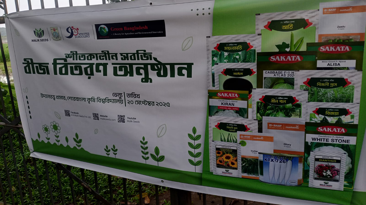 বিনামূল্যে ফুল ও সবজি বীজ পেলেন শতাধিক গাছপ্রেমী। আজ শনিবার রাজধানীর শেরে বাংলা কৃষি বিশ্ববিদ্যালয়ের (শেকৃবি) উদ্যানতত্ত্ব বিভাগের সামনে ‘নাইন্টি মিনিটস স্কুলিং’ ও এ আর মালিক সিডস প্রাইভেট লিমিটেডের পক্ষে তাদের মাঝে এ বীজ উপহার দেওয়া হয়।