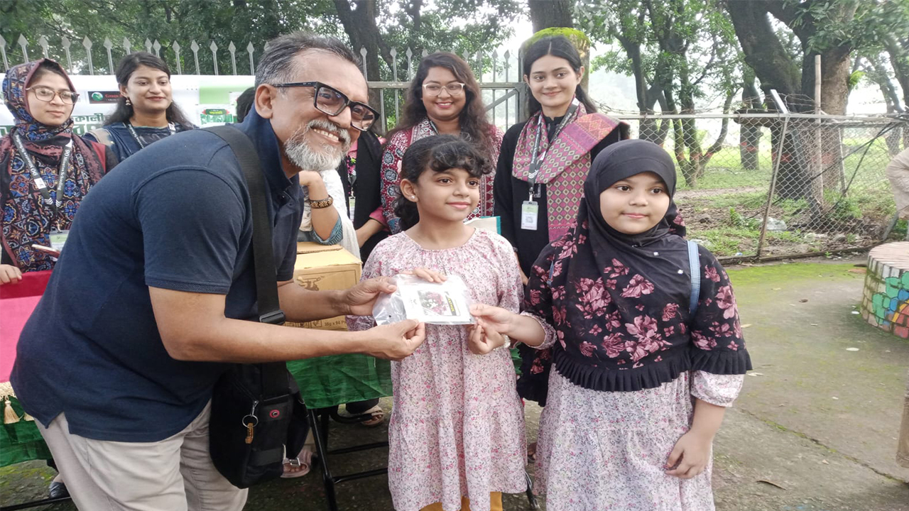 বীজ নিতে ভিড় জমান শিশু থেকে নানা বয়সী মানুষ। সবজি ও ফুলের বীজ পেয়ে তারা আয়োজকদের প্রতি কৃতজ্ঞতা জানান।