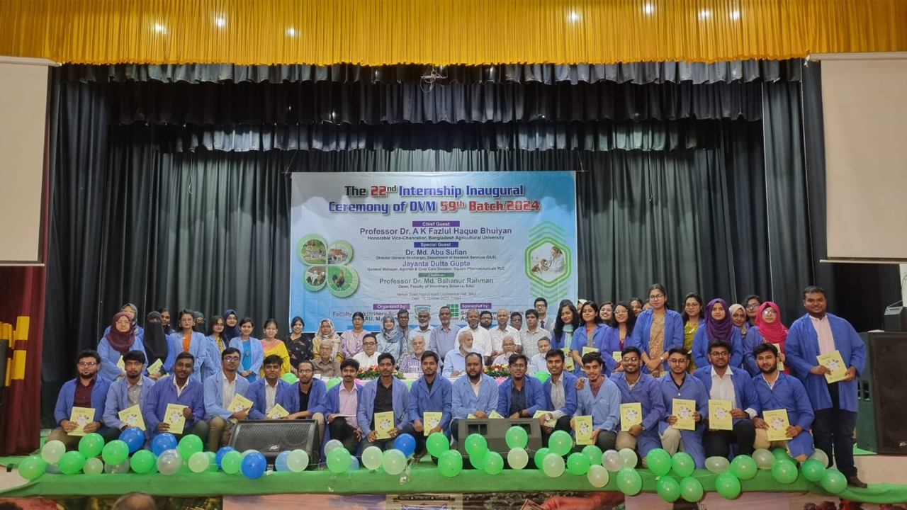 বাংলাদেশ কৃষি বিশ্ববিদ্যালয়ে (বাকৃবি) ভেটেরিনারি অনুষদের ডক্টর অব ভেটেরিনারি মেডিসিন (ডিভিএম) ৫৯তম ব্যাচের শিক্ষার্থীদের ইন্টার্নশিপ শুরু হয়েছে। এ বছর বাংলাদেশসহ বিশ্বের ছয়টি দেশে ১৯৩ জন শিক্ষার্থী ইন্টার্নশিপের সুযোগ পেয়েছেন। এর মধ্যে দেশের বাইরে ৫০ জন শিক্ষার্থী ইন্টার্নশিপ সম্পন্ন করবেন। এর মধ্যে থাইল্যান্ডে ৩৩ জন, মালয়েশিয়ায় ১০ জন, জাপানে দুজন, ইন্দোনেশিয়ায় তিনজন, জার্মানিতে একজন ও নেপালে একজন জন ইন্টার্নশিপের সুযোগ পেয়েছেন। এ ছাড়া বাকি শিক্ষার্থীদের দেশের ১৫টি স্থানে এই ইন্টার্নশীপ কার্যক্রম পরিচালিত হবে।