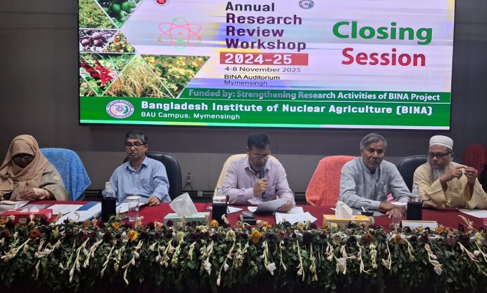 ময়মনসিংহের বাংলাদেশ পরমাণু কৃষি গবেষণা ইনস্টিটিউটের (বিনা) ২০২৪-২৫ অর্থবছরের বার্ষিক গবেষণা পর্যালোচনা কর্মশালার সমাপনী অনুষ্ঠিত হয়েছে। শনিবার (৮ নভেম্বর) বাংলাদেশ কৃষি বিশ্ববিদ্যালয় (বাকৃবি) চত্বরে অবস্থিত বিনার কেন্দ্রীয় মিলনায়তনে এ কর্মশালার সমাপনী অনুষ্ঠিত হয়।
